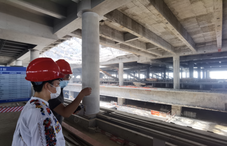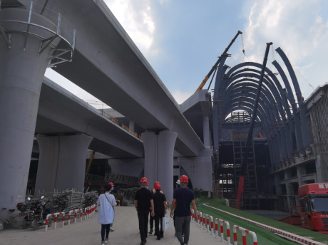1. 神馳文化領(lǐng)導(dǎo)與上海鐵路文化廣告有限公司工作人員現(xiàn)場(chǎng)查考察正在修建中的杭州西站