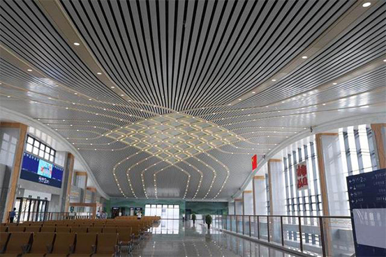 全新亮相的安吉站站房秀美大氣,整體裝修方案主題為“綠水青山真福地,安泰吉祥桃花源”,以最基本“綠水青山就是金山銀山”的兩山理念為出發(fā)點(diǎn),引申出“美麗安吉、富裕安吉、人文安吉”,由“山、水、茶、竹”及昌碩文化來(lái)體現(xiàn)。